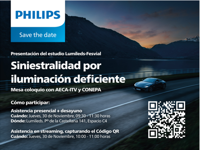 ¿Sabías que uno de cada tres accidentes de tráfico se produce por circunstancias de visibilidad limitada o por iluminación deficiente? El próximo 30 de noviembre, a las 9:30 horas, te invitamos a participar en la presentación del estudio “Efectos de la Iluminación deficiente en la siniestralidad vial” de Lumileds (Philips) y Fesvial. El estudio analiza…